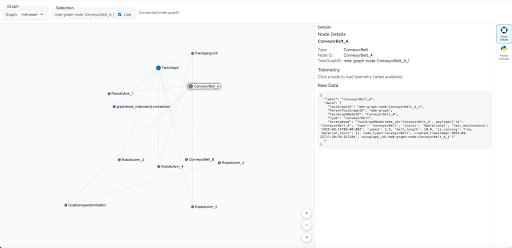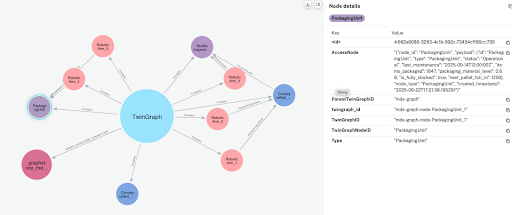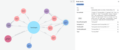 - Example - An MDE customer wants to create a digital twin of a new assembly line. Instead of manually coding every machine and connection, they can leverage a Google Gemini4 model with TwinGraph's MCP server — "Create a production line digital twin with five robotic arms, two conveyor belts, a quality inspection station, and a packaging unit. Connect Robotic Arm 1 and 2 to Conveyor Belt A, Robotic Arm 3 to Quality Inspection, and Robotic Arm 4 and 5 to Packaging." TwinGraph SDK leverages MDE's accessible data schema to suggest and build the foundational graph, which can then be further refined.