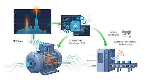 - Example - An MDE customer uses the data to identify a potential motor overheating issue. With TwinGraph SDK, an AI agent within the motor's digital twin can analyze the severity (using MDE data), simulate potential solutions, and then autonomously initiate a slowdown of the connected machine (if within pre-defined safety bounds) and schedule preventative maintenance, rather than waiting for a human operator to interpret an alert from MDE and act.